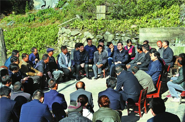 ? (10月10日,省委書(shū)記胡和平深入嵐皋縣南宮山鎮(zhèn)西河村,與部分群眾及鎮(zhèn)村干部進(jìn)行座談,了解扶貧工作進(jìn)展,聽(tīng)取群眾意見(jiàn)建議,與大家一起商討脫貧致富的措施。陜西日?qǐng)?bào)記者 宋紅梅/攝)?