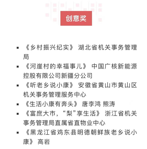 其中,恒口示范區(qū)選送作品《生活小康有奔頭》(作者·唐李鴻、熊濤)榮獲創(chuàng)意獎,其風(fēng)格親切,制作精良,感染力和觀賞性強。作品從獨特老鄉(xiāng)視角,讓老鄉(xiāng)當(dāng)主角,面對鏡頭講述自己用勞動創(chuàng)造幸福生活的故事。同時,生動展示我們黨帶領(lǐng)全國各族人民打贏脫貧攻堅戰(zhàn),全面建成小康社會的偉大歷史成就。?