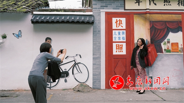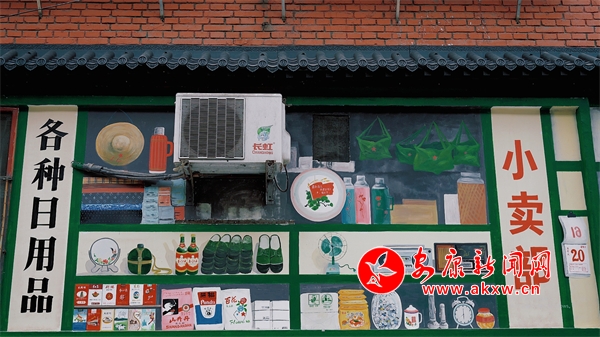 一支畫筆,一面白墻,一墻一風景,一墻一文化,不經意間,某個轉角就能與斑斕的墻繪撞個滿懷。漫步在漢濱區(qū)老城街道大北街,色彩斑斕的街道給這座城市的街巷生活增添了一絲色彩和靈魂。上世紀六七十年代的小賣部、照相館、電影院、二八大杠自行車等元素……一幅幅充滿鄉(xiāng)愁記憶的彩繪,讓冰冷的街道逐漸生動活潑起來。(通訊員 張敏 張媛)