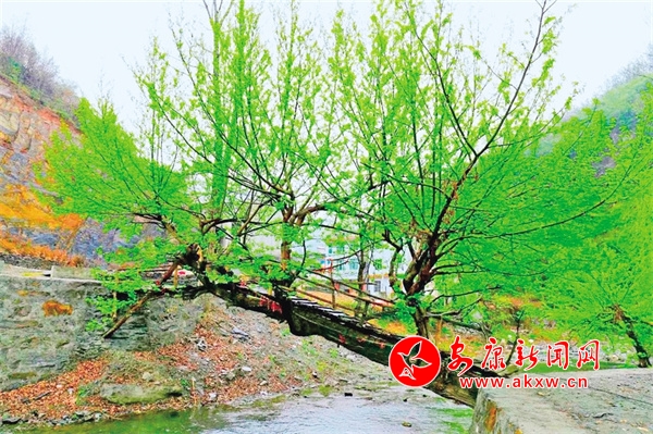四十多年前,一場百年不遇的洪災(zāi),沖壞堤坎,毀了樹木,襲了田地,河灘一片狼藉。這棵老柳,根部的土石被洪水沖刷得所剩無幾,沒有泥土的支撐樹干緩緩傾斜,晃悠了一天一夜,頭部漸漸地搭到了東岸堤坎。次日清晨,河?xùn)|有人發(fā)現(xiàn)了,立即喊上四五個(gè)小伙子,從樹身爬過,去西岸救人、查災(zāi)。緊接著,兩岸的人們爭相過河到對(duì)岸去救災(zāi)、救苗,又陸續(xù)過河修路、種地,進(jìn)而過河上學(xué)、出山,一連數(shù)月都從樹身爬過,把這樹干當(dāng)作橋身,你來我往地通行于兩岸。于是,這道天然“樹橋”,既凝聚了生產(chǎn)救災(zāi)力量傳遞了兩岸情感,又溝通了人流、物流、信息流。