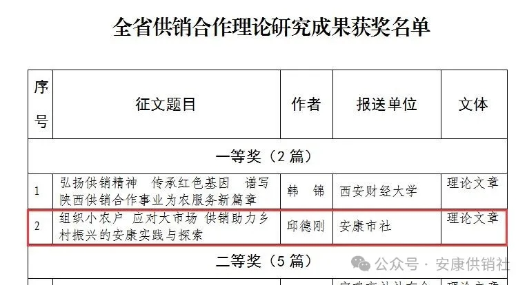 按:本文系安康市供銷合作社黨組書記、理事會主任邱德剛署名理論文章,立足供銷助力鄉(xiāng)村振興的安康實(shí)踐與探索,深入闡述了“組織小農(nóng)戶應(yīng)對大市場”的內(nèi)在邏輯,把群眾“組織起來”投身經(jīng)濟(jì)合作的實(shí)踐方法,在助力鄉(xiāng)村振興、推進(jìn)共同富裕實(shí)踐中探索出一條可復(fù)制可推廣的典型經(jīng)驗(yàn),其理論內(nèi)涵、實(shí)踐邏輯為在推進(jìn)鄉(xiāng)村振興中更好發(fā)揮供銷社的獨(dú)特優(yōu)勢和重要作用提供了有益參考,具有較強(qiáng)的指導(dǎo)意義。該文在中華全國供銷總社和陜西省供銷總社“薪火相傳七十載,砥礪奮進(jìn)新時代”主題征文中獲評“全省供銷合作理論研究成果一等獎”。