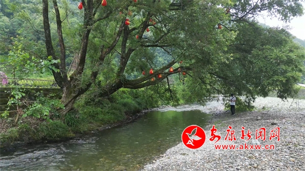菜園緊挨著一條河。河邊,幾棵高大的麻柳樹(shù)成了幾個(gè)天然的遮陽(yáng)棚。河灘上則搭建了涼棚,供更多游客休憩。