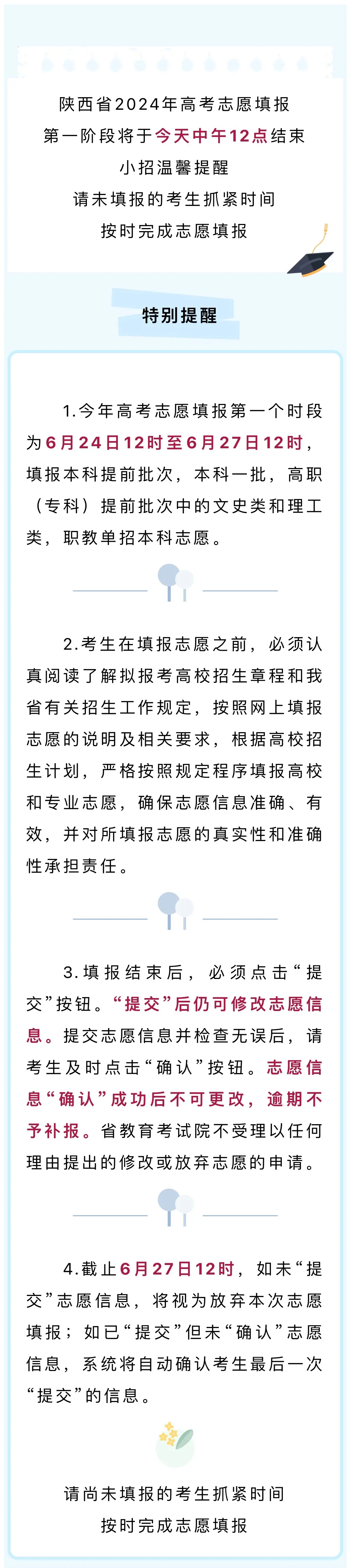 溫馨提醒:陜西高考志愿填報(bào)將于今日中午12點(diǎn)結(jié)束