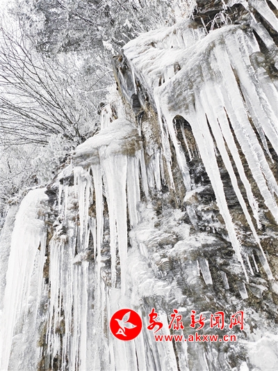 嶙峋的怪石、陡峭的崖壁,都被厚厚的積雪所覆蓋,冰凌從巖石上垂落,長短不一,粗細(xì)各異,有的尖銳如劍,有的靈動(dòng)如晶,為這寒冷的世界增添了一抹亮麗的色彩。偶爾能聽到冰層下傳來的微弱流水聲,似是大地深處傳來的幽咽,訴說著對春的渴望與期待。