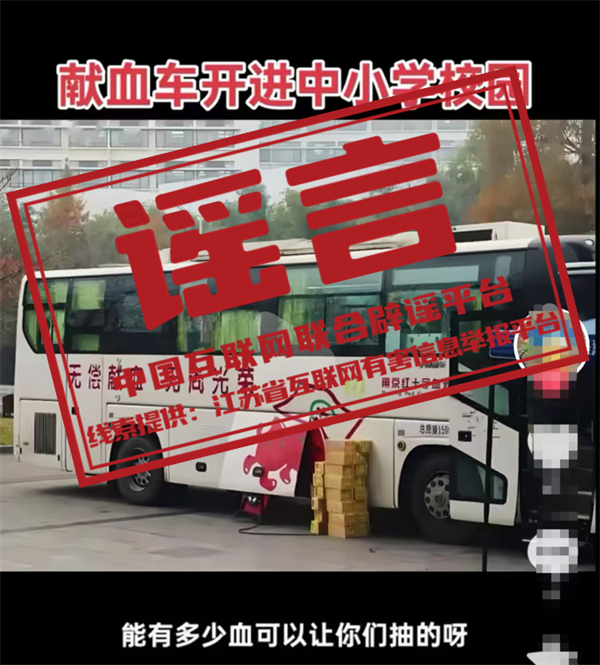 真相:近日,有網(wǎng)民發(fā)布配圖為南京紅十字血液中心獻血車的視頻,稱“獻血車直接開進中小學(xué)校園”“那中小學(xué)生十幾歲能有多少血可以讓你們抽呀”。經(jīng)南京市衛(wèi)健部門核實,網(wǎng)傳信息系謠言。該視頻配圖實為2022年南京紅十字血液中心在南京林業(yè)大學(xué)組織獻血的照片。根據(jù)《中華人民共和國獻血法》規(guī)定,國家提倡18周歲至55周歲的健康公民自愿獻血。南京紅十字血液中心不接受18歲以下未成年中小學(xué)生獻血。(來源:“南京網(wǎng)絡(luò)辟謠”微信公眾號)
