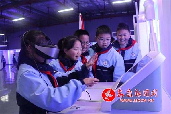 在科技館內(nèi),學(xué)生們?cè)谥v解員的引導(dǎo)下,開(kāi)啟了“沉浸式”科學(xué)之旅,近距離接觸機(jī)器人、VR、人工智能等前沿科技展品。智能機(jī)器人靈巧的舞蹈動(dòng)作引得孩子們陣陣歡呼;VR體驗(yàn)區(qū)里,學(xué)生們戴上設(shè)備“穿越”到宇宙星空,感受科技的神奇魅力;學(xué)生們還通過(guò)參觀“節(jié)水之旅 我們?cè)谛袆?dòng)”等主題板塊展品,親手操作實(shí)驗(yàn)設(shè)備,感受到了科技對(duì)生活的深刻影響。走進(jìn)氣象站,學(xué)生們跟隨氣象工作人員,參觀了氣象科普長(zhǎng)廊,閱覽二十四節(jié)氣對(duì)生產(chǎn)生活的影響。在氣象觀測(cè)場(chǎng),近距離觀察風(fēng)向風(fēng)速傳感器、天氣現(xiàn)象儀器等設(shè)備。