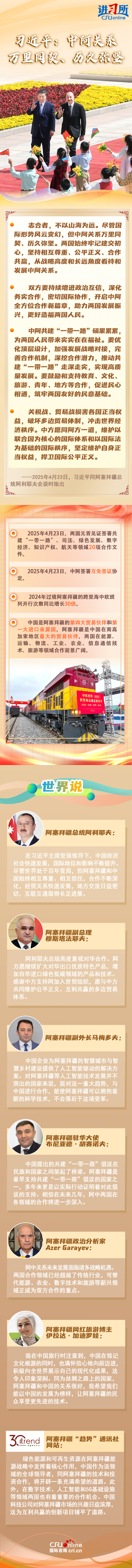阿方各界認為,盡管世界處于百年變局,但阿塞拜疆和中國始終相互尊重、相互信任,合作不斷深化。作為最早參與共建“一帶一路”的國家之一,阿塞拜疆期望借助一系列合作契機,與中國共同迎接發(fā)展新機遇。?