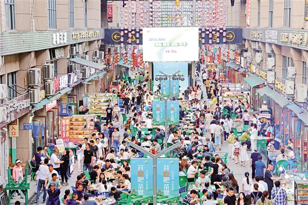 “五一”期間,紫陽(yáng)縣紫邑新城美食街區(qū)開(kāi)展了特色文旅活動(dòng),吸引游客紛至沓來(lái)。 鄭曉虎 攝