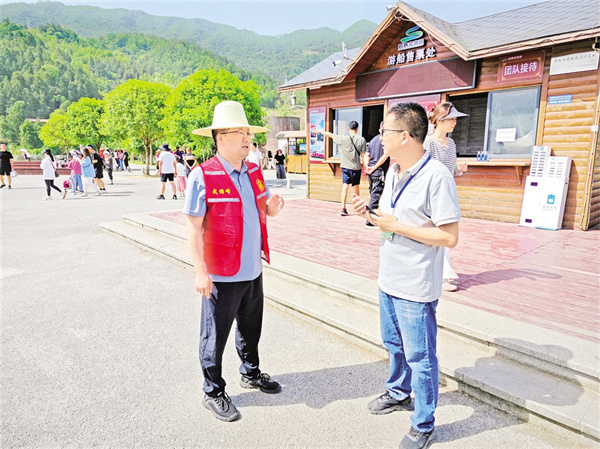 游客需要什么,黨員就做什么!今年“五一”期間,全鎮(zhèn)設(shè)立4個(gè)固定服務(wù)崗、30個(gè)流動(dòng)服務(wù)點(diǎn),配備2支摩托巡邏隊(duì)和200名志愿者,形成“點(diǎn)線面”結(jié)合的服務(wù)網(wǎng)絡(luò)。同時(shí)運(yùn)用“智慧監(jiān)管云平臺(tái)”,整合無人機(jī)巡查、AI人流監(jiān)測等技術(shù)手段,實(shí)現(xiàn)景區(qū)客流精準(zhǔn)調(diào)控,贏得了廣大游客的爭相稱贊。