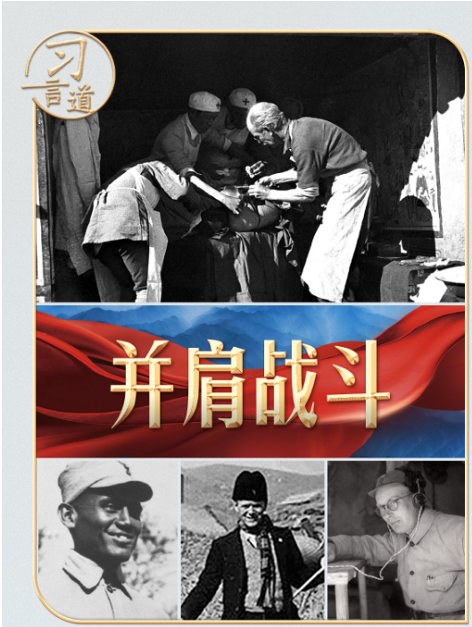 印度醫(yī)生柯棣華、法國(guó)醫(yī)生貝熙葉、德國(guó)人約翰·拉貝、丹麥人辛德貝格、英國(guó)人林邁可、國(guó)際主義戰(zhàn)士漢斯·希伯、蘇聯(lián)飛行大隊(duì)長(zhǎng)庫(kù)里申科、美國(guó)“飛虎隊(duì)”......他們的事跡,習(xí)近平總書(shū)記曾多次動(dòng)情講述。總書(shū)記還在國(guó)內(nèi)外重要場(chǎng)合為曾幫助和支持中國(guó)抗戰(zhàn)的國(guó)際友人頒獎(jiǎng),向他們致敬。
