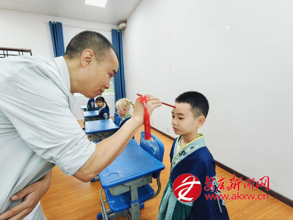 “端身正姿、肅整衣冠、擊鼓明志……”9月12日,鎮(zhèn)坪縣同維希望小學(xué)階梯教室內(nèi),2025年一年級新生“開筆禮”如期舉行。現(xiàn)場通過“正衣冠”“感孝悌”“朱砂啟智”“擊鼓鳴志”“開筆啟智”等環(huán)節(jié),讓同學(xué)們深切感受尊長孝親、志存高遠(yuǎn)、勤學(xué)上進(jìn)的中國傳統(tǒng)文化的精神內(nèi)涵。(通訊員 王康)