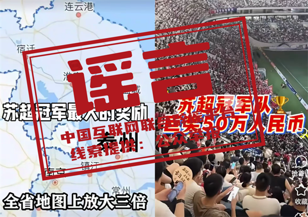 辟謠:地圖放大三個(gè)字號(hào)?獎(jiǎng)金五十萬(wàn)?這些網(wǎng)傳蘇超冠軍隊(duì)獎(jiǎng)勵(lì)都是假的!