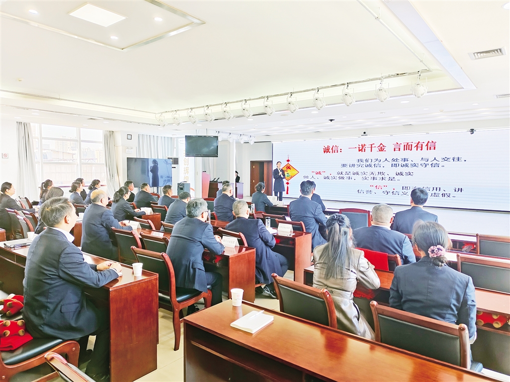 宣講會以“筑牢內部誠信意識,傳遞文明金融溫度”為目標,面向管理人員及員工代表展開深度分享。宣講團隊結合金融行業(yè)特點與文明城市創(chuàng)建要求,從“誠信是金融服務的生命線”“員工誠信素養(yǎng)與客戶信任的關聯”“行內誠信服務案例與文明規(guī)范”三個方面破題,通過剖析業(yè)務場景中的誠信服務案例,宣講征信知識與行業(yè)誠信準則,讓員工深刻理解“誠信”不僅是社會文明的基石,更是金融服務的核心底色。在誠信服務承諾互動環(huán)節(jié),員工代表結合崗位實際分享服務心得。與會人員簽署了《誠信服務承諾書》,并將誠信理念轉化為崗位實踐的具體標準,進一步強化“人人都是文明使者,事事關乎文明創(chuàng)建”的責任意識。