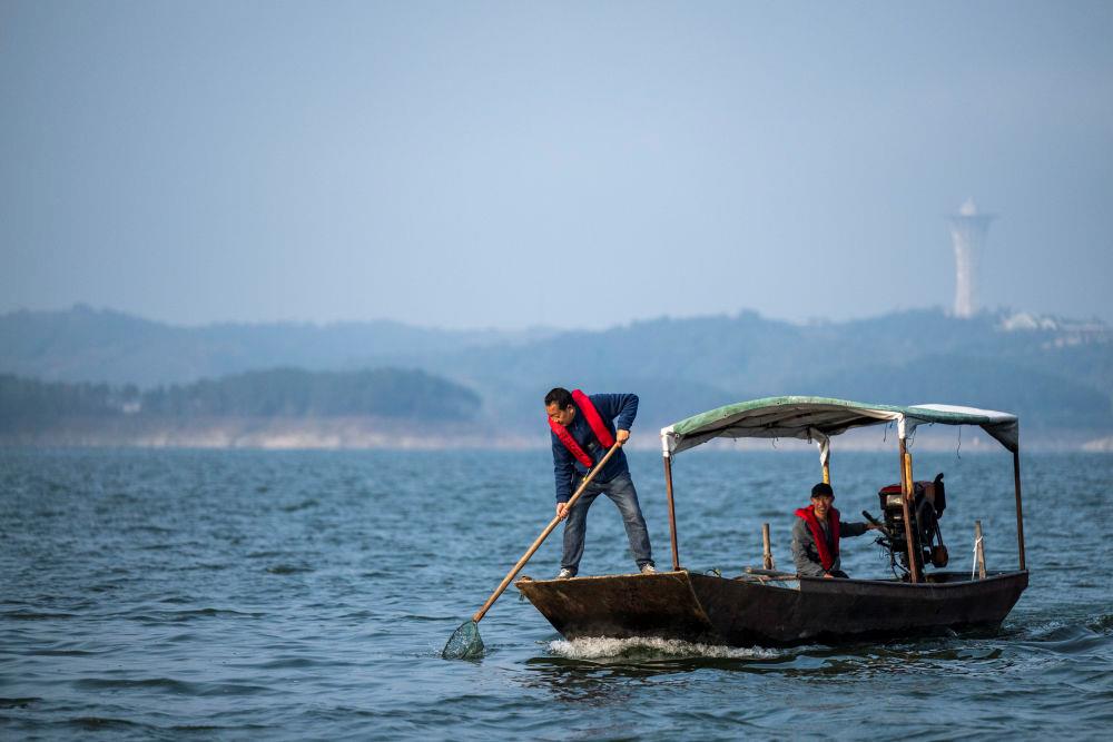 △2024年10月28日,湖北十堰丹江口清漂隊隊員在庫區(qū)進(jìn)行清漂作業(yè)。2023年,丹江口成立“小水滴”守水護(hù)水志愿服務(wù)隊,越來越多人加入守水護(hù)水行列 。
