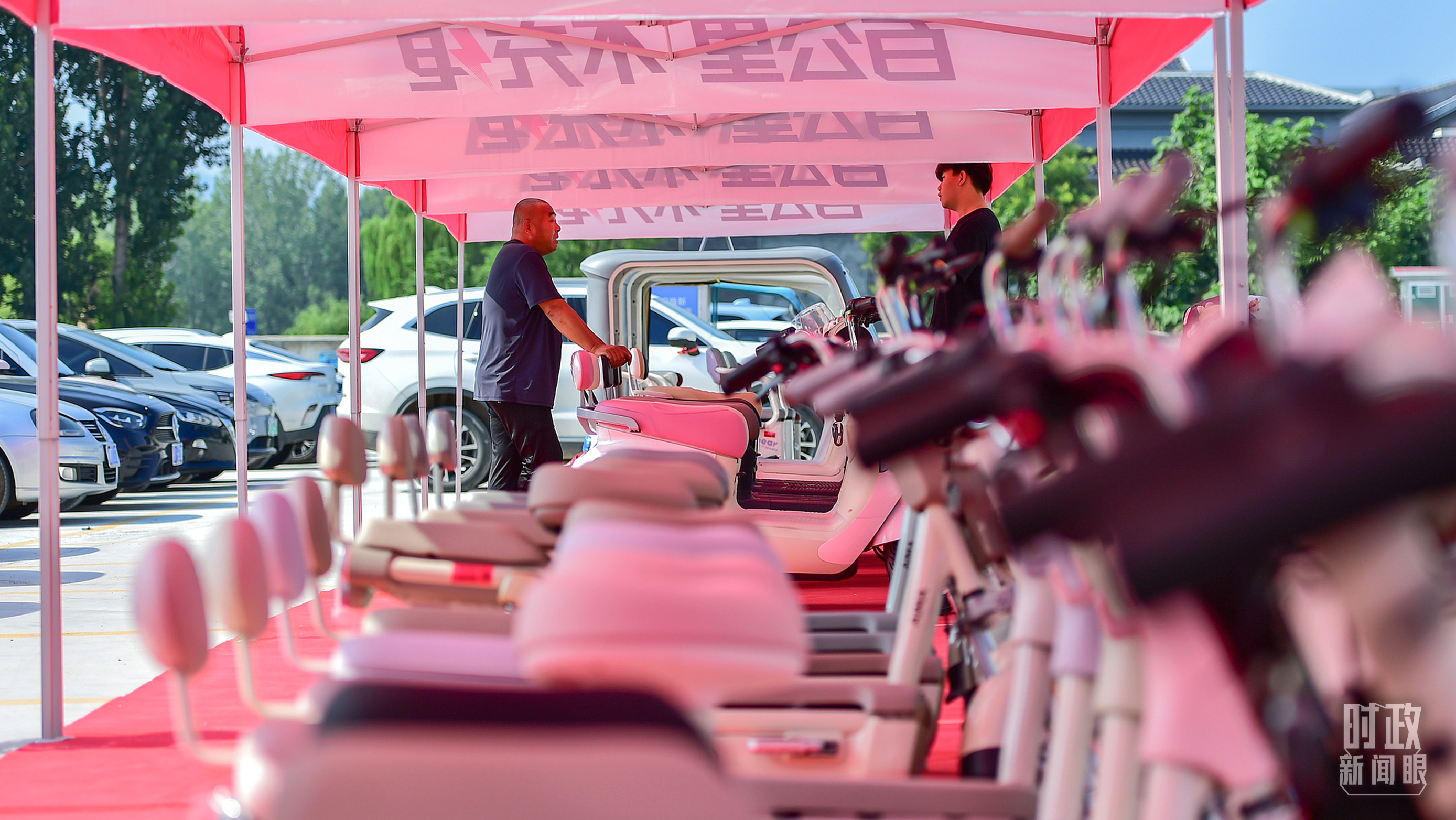 △2025年7月11日,山東濰坊,消費者在“消費品以舊換新進(jìn)社區(qū)、進(jìn)鄉(xiāng)村、進(jìn)企事業(yè)單位”活動現(xiàn)場選購電動自行車。(圖/視覺中國)