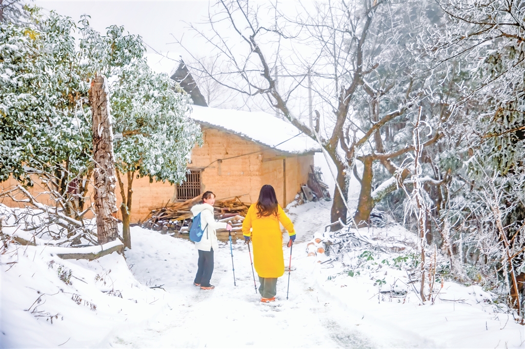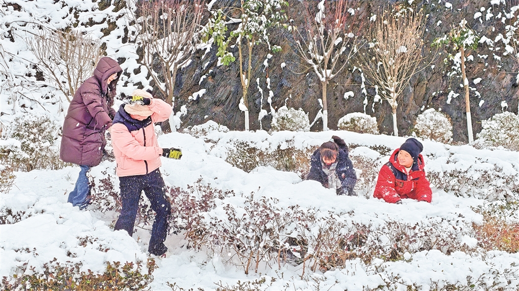 元旦期間,游客來到紫陽縣米溪梁山頂,堆雪人,打雪仗,親近大自然,享受假日的愉悅。 儲茂銀 攝