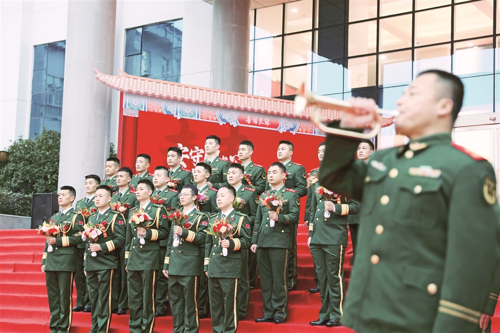 近日,武警陜西總隊(duì)安康支隊(duì)營(yíng)區(qū)內(nèi)彩旗高懸、紅毯鋪地,一場(chǎng)洋溢著鐵血柔情的集體婚禮在此溫情啟幕。20對(duì)新人在軍旗見證下,許下相守一生的誓言。
