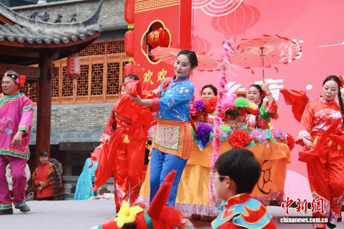 2月4日,全國“村晚”示范展示點活動暨旬陽市“我在古鎮(zhèn)過大年”文旅活動在陜西安康旬陽市蜀河鎮(zhèn)啟動。活動緊扣“古鎮(zhèn)年味”元素,融合漢江航運文化、鄉(xiāng)村振興等內(nèi)容,以村歌聯(lián)唱、戲曲薈萃、農(nóng)民走秀、農(nóng)產(chǎn)品展銷等形式,營造出了濃厚的春節(jié)氛圍。圖為活動現(xiàn)場。 張昊 攝