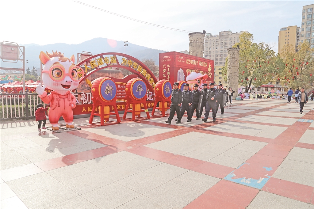 ⑤ 旬陽(yáng)公安特警春節(jié)期間全警力投入,在重要時(shí)段、人群密集場(chǎng)所加強(qiáng)巡邏。李鵬 攝