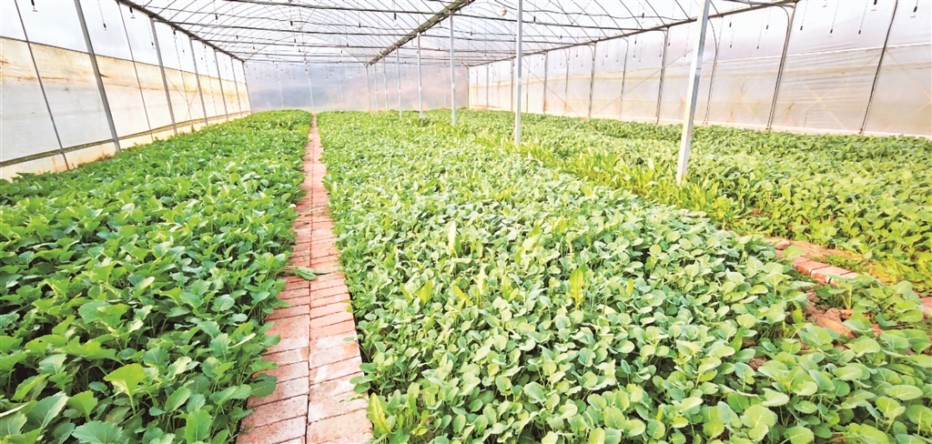 合作社大棚內(nèi)一排排硒滋圓二號(hào)油菜薹長勢(shì)喜人
