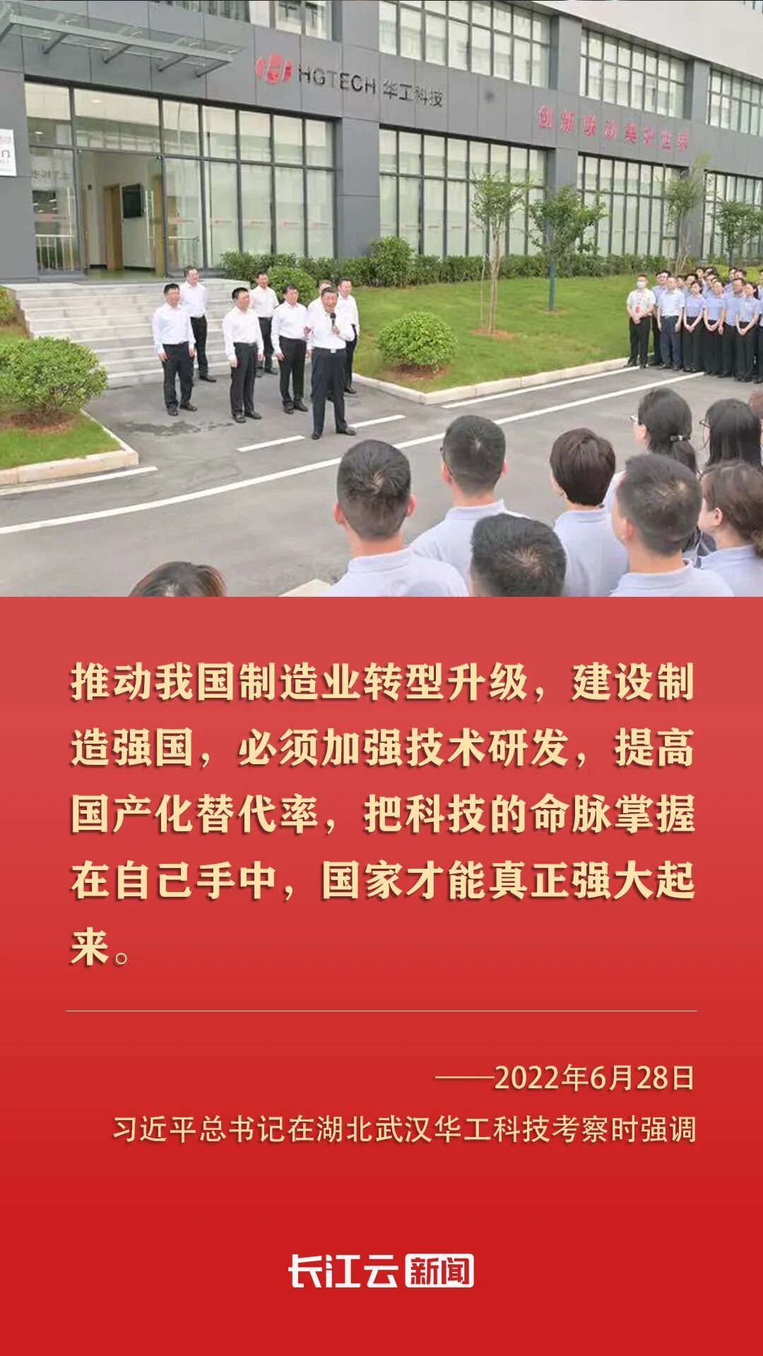 2022年6月,習(xí)近平總書(shū)記來(lái)到湖北武漢考察,第一站就來(lái)到光谷,來(lái)到華工科技。他指出,湖北武漢東湖新技術(shù)開(kāi)發(fā)區(qū)在光電子信息產(chǎn)業(yè)領(lǐng)域獨(dú)樹(shù)一幟。要加強(qiáng)技術(shù)研發(fā)攻關(guān),掌握更多具有自主知識(shí)產(chǎn)權(quán)的核心技術(shù),不斷延伸創(chuàng)新鏈、完善產(chǎn)業(yè)鏈,為推動(dòng)我國(guó)光電子信息產(chǎn)業(yè)加快發(fā)展作出更大貢獻(xiàn)。