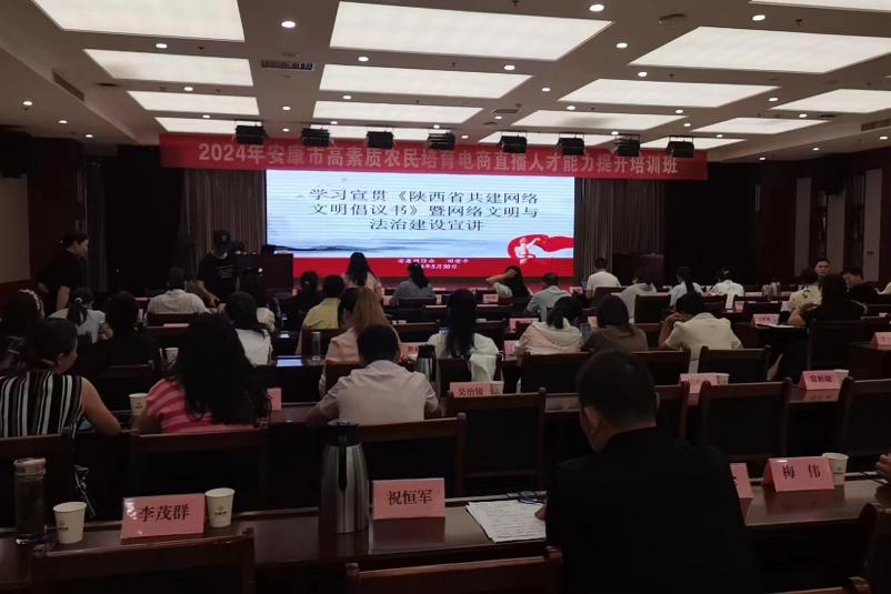 ? ? ?培訓中,市委網信辦工作人員以《學習宣貫<陜西省共建網絡文明倡議書>暨網絡文明與法治建設宣講》為主題,結合電商直播相關互聯(lián)網法律法規(guī),引用大量典型案例進行普法宣講,規(guī)范和引導廣大學員要遵規(guī)守紀、文明辦網、誠信用網。
