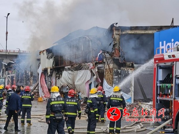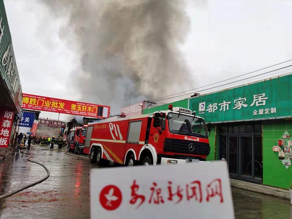 興華建材市場突發(fā)火災(zāi) 消防緊急處置