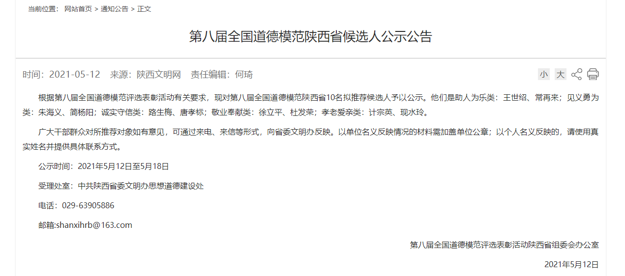 我市一人入選!第八屆全國(guó)道德模范陜西省候選人公示