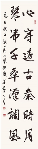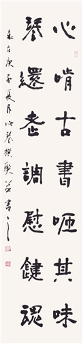 其中以書法進(jìn)益尤快, 在趙心琴看來,畫家必須勤習(xí)書法,她認(rèn)為好的書法必須出于情理之中、法度之外,性情中人的她書法也是性情之作,常常隨著性情表達(dá)自己的心境。她可以從行書中求變化,楷書中找活潑,在隸書中也不墨守成規(guī),重視臨摹但不拘泥于過去的范本,每一幅書法作品都是自己針對(duì)不同的主體作出的創(chuàng)作,每幅作品都求新求變。同時(shí)她認(rèn)為稱心的國(guó)畫作品必須把好題款這道關(guān),如此方才相映成輝。2012年,省圖書館舉辦陜西作家書畫展,趙心琴應(yīng)邀出席,觀展時(shí)觸景生情,三五天后,一副不忘家鄉(xiāng)養(yǎng)育恩“巴山承心志,漢水潤(rùn)琴音”的嵌名處女聯(lián)誕生了!此后,興致所致,偶有妙句成聯(lián)。再后來,一發(fā)不可收,僅以她的名字“心琴”二字,前后不重復(fù),內(nèi)容不重復(fù),陸陸續(xù)續(xù)累計(jì)撰寫了三百多副藏名聯(lián)。據(jù)趙心琴講:有時(shí)她為一字的斟酌耗費(fèi)幾天精力,甚至夜不成寐。Cqx安康新聞網(wǎng)