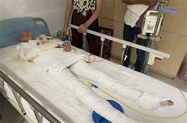 靈靈全身有91%的燒傷,大多都是重二度和輕三度燒傷,尤其是雙腿、后背和脖子最嚴重,目前已經(jīng)經(jīng)過三次手術(shù),其后可能還需要經(jīng)歷4到5次植皮手術(shù)和瘢痕治療。