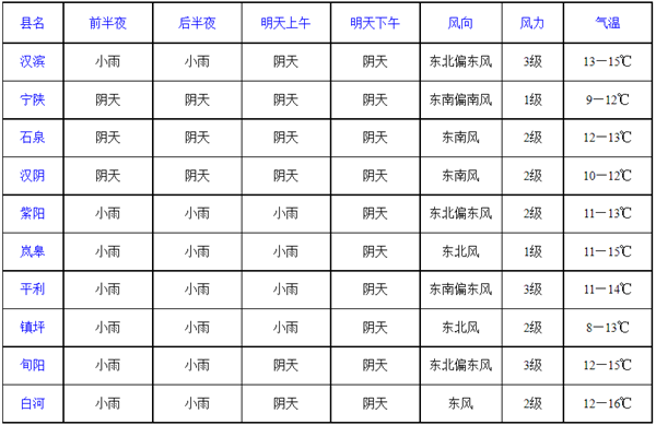 預(yù)計(jì)今天晚上陰天有小雨,明天白天陰天,南部小雨;12日陰天轉(zhuǎn)多云;13日多云間晴天;14日多云轉(zhuǎn)陰天;15日小雨轉(zhuǎn)中雨;16日小雨轉(zhuǎn)陰天;17日陰天轉(zhuǎn)多云。WWh安康新聞網(wǎng)