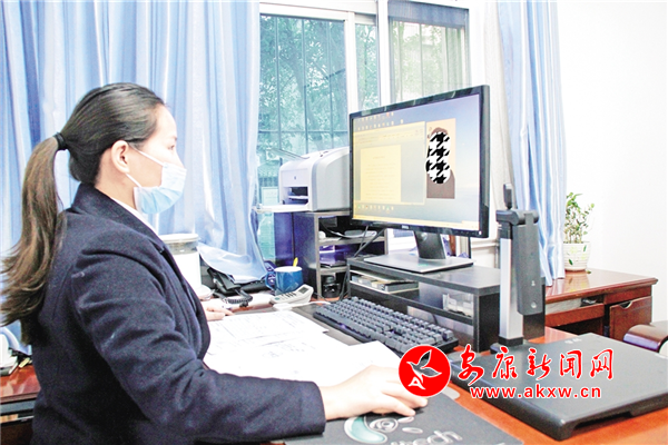 胡溢紅正在通過網(wǎng)絡辦理公證業(yè)務 記者 張喬 攝8Px安康新聞網(wǎng)