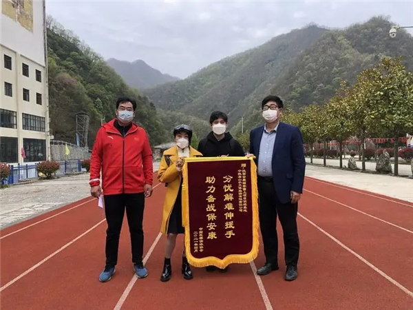 ▲去年4月,隋文靜和韓聰向安康寧陜縣的國家雪上項(xiàng)目訓(xùn)練基地負(fù)責(zé)人林晉炎送上錦旗。4eB安康新聞網(wǎng)