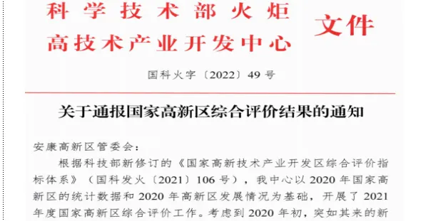 2月17日,國家科技部火炬中心公布了2021年度國家高新區(qū)評價結(jié)果:在全國157個國家高新區(qū)中,安康高新區(qū)綜合排名再創(chuàng)新高,較2020年度提升5個位次,升至全國第58名,位列全省7家國家高新區(qū)第3名。