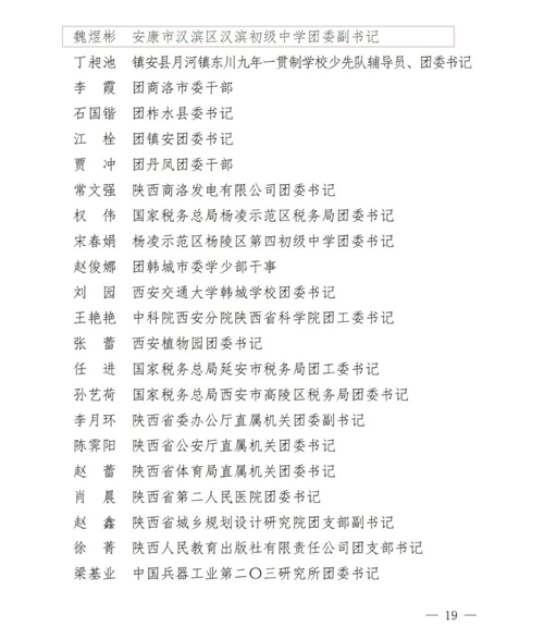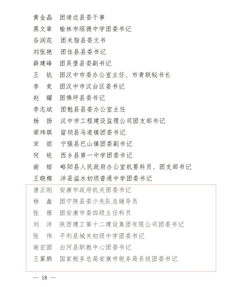 祝賀!安康21名個人、16個集體獲團省委表彰