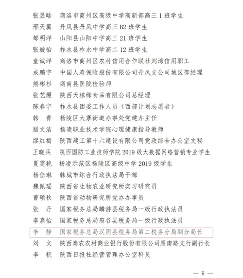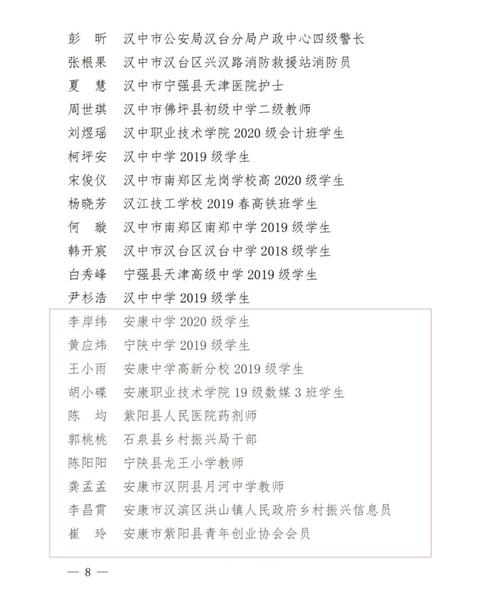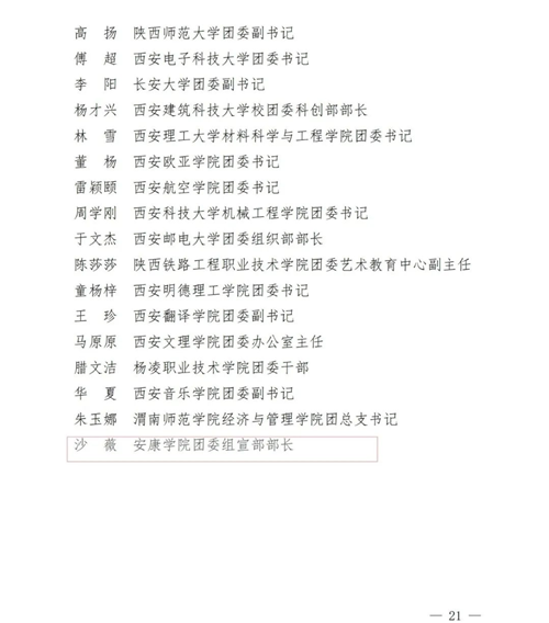 2020-2021 年度“陜西省優(yōu)秀共青團干部” 名單Yvj安康新聞網(wǎng)