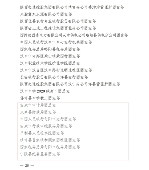 2020-2021 年度“陜西省五四紅旗 團支部”名單Yvj安康新聞網(wǎng)