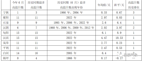 圖片 2022 年 6 月高溫日數(shù)與歷史同期對比bqQ安康新聞網(wǎng)