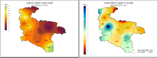 6 月日最高氣溫(左)和最高氣溫距平(右)分布圖bqQ安康新聞網(wǎng)