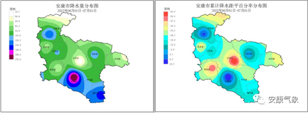 6月降水量(左)和累計降水距平百分率(右)分布圖bqQ安康新聞網(wǎng)