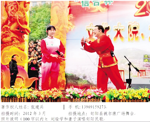 劉銓學(xué)和妻子在旬陽祝爾慷廣場(chǎng)演唱旬陽民歌