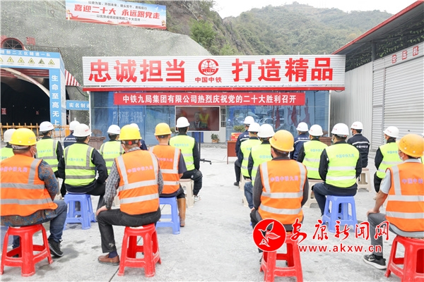 △中鐵九局西康高鐵項目部組織工作人員收聽收看中國共產(chǎn)黨第二十次全國代表大會開幕會直播。(記者 羅超)