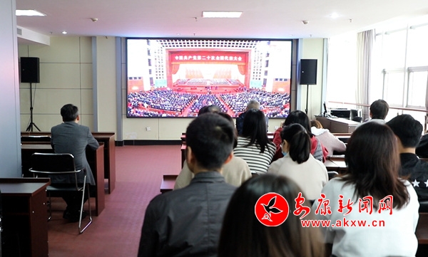 △漢濱區(qū)紀委監(jiān)委組織黨員干部集中收看中國共產(chǎn)黨第二十次全國代表大會開幕會直播。(通訊員 鄭時根)