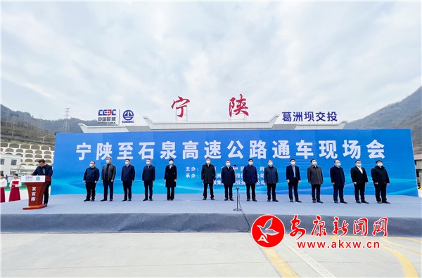 市委書記武文罡發(fā)布通車令。省交通運輸廳副廳長萬振江講話,葛洲壩集團副總經(jīng)理徐志國介紹寧石高速公路建設情況。市委常委、常務副市長高晶華致辭。副市長周耀宜主持。市人大常委會主任王彪、市政協(xié)主席周建功,市委常委、宣傳部部長、石泉縣委書記陳蓮,市政協(xié)副主席、寧陜縣委書記鄭紅丹,農(nóng)業(yè)銀行陜西省分行副行長薛雷,陜西交控集團黨委委員屈永照,葛洲壩集團交通投資有限公司董事長廖光榮,葛洲壩集團路橋工程有限公司總經(jīng)理吳海軍,省交通運輸廳總工程師伍石生,葛洲壩延黃寧石高速公路有限公司總經(jīng)理王勇出席會議。