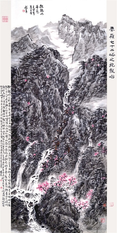 春回大地,萬象更新,章長青《秦嶺七十二峪》系列山水畫臺歷也新鮮問世,這是他用了多年的時間,走訪秦嶺眾多峪口后完成的。中國國家畫院研究員、清華大學(xué)美術(shù)學(xué)院教授、博導(dǎo)王魯湘曾說過,恐怕在華夏大地上再難找到如秦嶺這樣完美的“師造化”藍(lán)本了,要嶺有嶺,要峰有峰,要丘有丘,要壑有壑。他認(rèn)為秦嶺是中國山水畫的發(fā)祥地,唐代王維、李思訓(xùn)畫的就是這方山水。