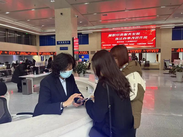 2月24日,在縣政務(wù)服務(wù)中心,導(dǎo)辦員在為群眾辦理個(gè)體戶網(wǎng)上登記申報(bào)。通訊員 湯麗 攝8NA安康新聞網(wǎng)