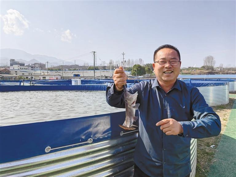 “2021年,我們村和鄰村的一家企業(yè)聯(lián)合發(fā)展?jié)O業(yè),我將自家的1.4畝閑置地流轉(zhuǎn)給軍壩村水產(chǎn)養(yǎng)殖基地,不僅每年有1000元的土地流轉(zhuǎn)收入,而且還被該基地聘為工作人員,月工資2500元。”謝祖勝說(shuō),“我管護(hù)的魚(yú)塘里有1萬(wàn)尾魚(yú),我每天要給魚(yú)喂食4次,還要觀察魚(yú)是否受傷或有寄生蟲(chóng)等。如果管護(hù)得好,公司每月再獎(jiǎng)勵(lì)我500元。”