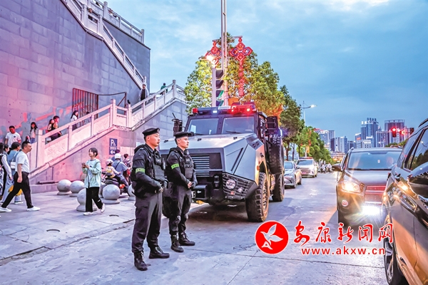 5月1日,西城閣執(zhí)勤的特警。 汪德珍 攝C7z安康新聞網