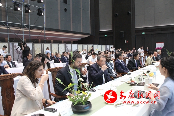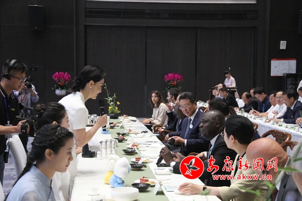 “大使品茶”為現(xiàn)場嘉賓呈現(xiàn)了一場精彩絕倫的茶文化盛宴。 茶香琴韻相伴下,與會嘉賓欣賞茶藝、體驗茶道,品茗點評了安康富硒茶中的綠茶、白茶、紅茶、秦漢古茶,以及福州茉莉花茶、湖南君山銀針等茗茶,各類茶品飄逸外觀和濃香入肺的回味給嘉賓們留下了深刻印象。5K5安康新聞網(wǎng)