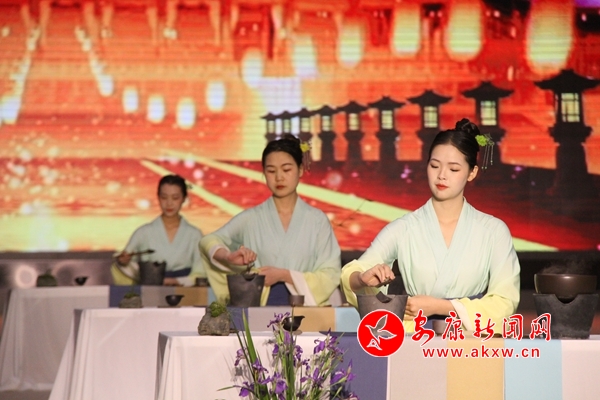 “一對紅鴉雀(喜鵲)飛起飛落叫喳喳,叫聲姐姐快燒茶,后院客來啦!……”活動以陜南民歌舞《姐姐快燒茶》開場,體現(xiàn)了家里來客要燒水泡茶的陜南民間傳統(tǒng)習(xí)俗和熱情好客的淳樸民風(fēng)!赌昴暧袀三月三》《茉莉茶歌》《茶飄香》等豐富多彩的茶專題現(xiàn)場表演,充分詮釋了采茶制茶、沏茶飲茶的多姿形態(tài)和茶鄉(xiāng)人民的淳樸風(fēng)貌。陜西省非物質(zhì)文化遺產(chǎn)傳承項目紫陽毛尖茶傳統(tǒng)制作技藝傳承人曾朝和,以及新一代茶人龍珊,與嘉賓們分享了安康制茶匠人對古法技藝的保護(hù)與傳承。5K5安康新聞網(wǎng)